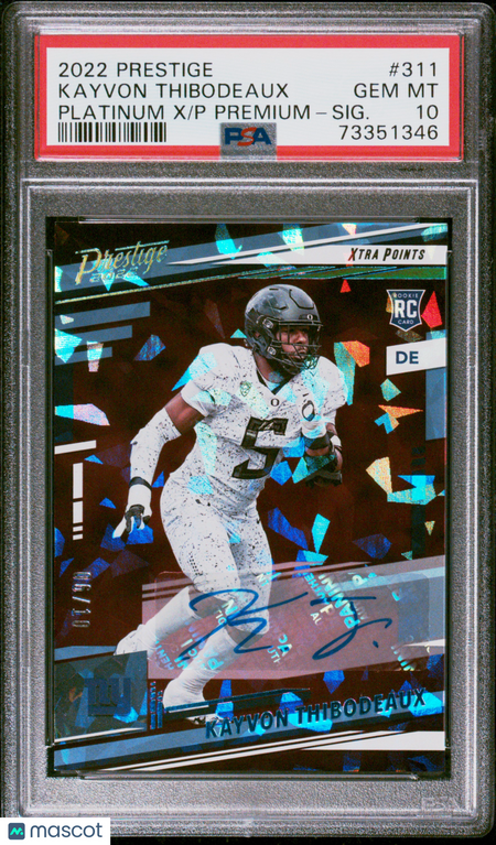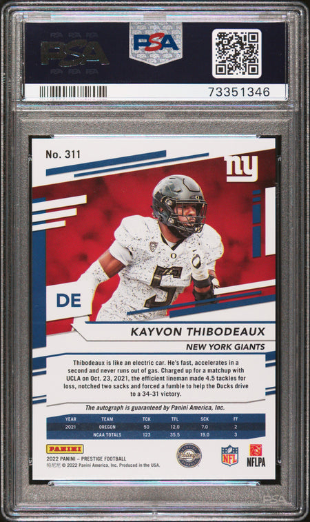 2022 Panini Prestige Kayvon Thibodeaux #311 Platinum X Premium SIG. 06/10 PSA 10