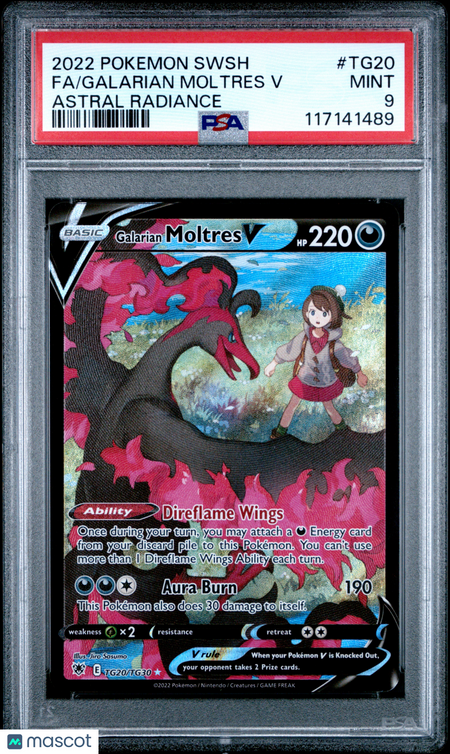 2022 Pokemon Sword & Shield Astral Radiance Galarian Moltres V #TG20 PSA 9