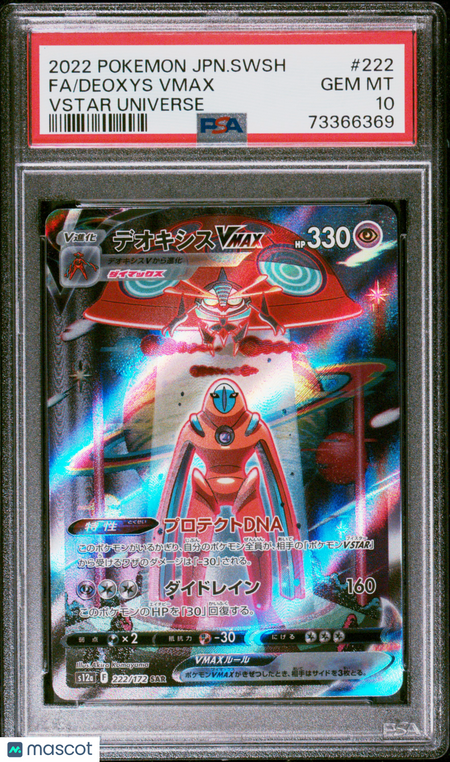 2022 Pokemon Japanese Sword & Shield Vstar Universe Deoxys Vmax Fa #222 Japanese Vstar Universe PSA 10