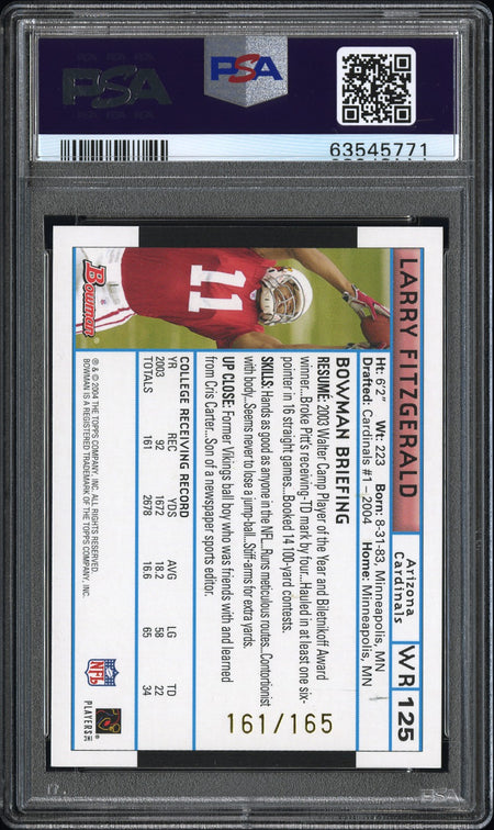 2004 Bowman Larry Fitzgerald #125 White /165 PSA 9