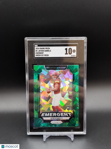 Jayden Daniels 2024 Panini Prizm Green Cracked Ice Emergent Rookie RC #2 SGC 10