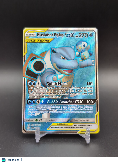 Pokemon Cosmic Eclipse Blastoise and Piplup GX Full Art 214/236
