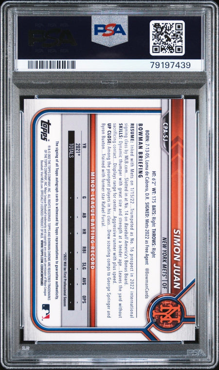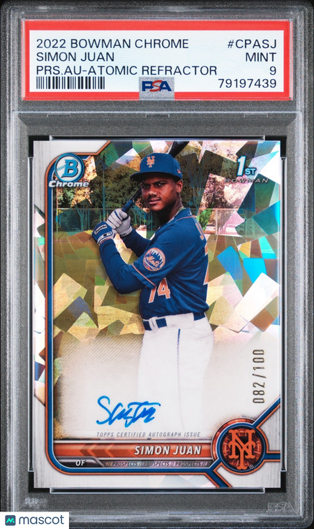 2022 Bowman Chrome Simon Juan Atomic Auto /100 PSA 9 MINT SSP RC ROOKIE METS SP