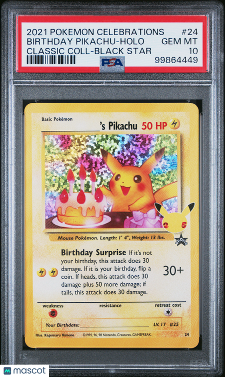 2021 Pokemon Celebrations Classic Collection Birthday Pikachu #24 PSA 10