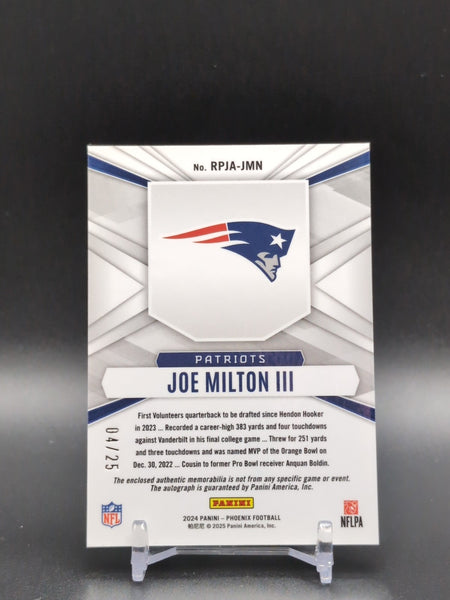 2024 Panini Phoenix Joe Milton III Rookie Phenom Patch Auto Green /25 Cowboys