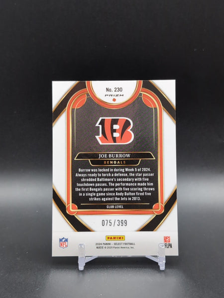 2024 Select Joe Burrow Orange Shock Club Level /399 Color Match Bengals