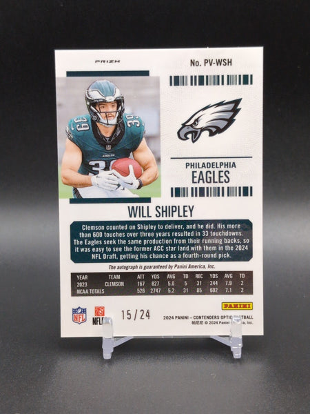 Will Shipley 2024 Panini Zenith SP RC Contenders Optic Preview Auto /24 Eagles
