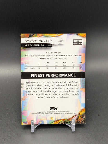 2024 Topps Finest Spencer Rattler RC Rookie Common Blue Refractor /325