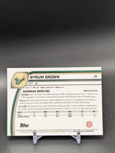 Byrum Brown 2024 Bowman U Chrome 1st Aqua Refractor /299 #34 USF b1F