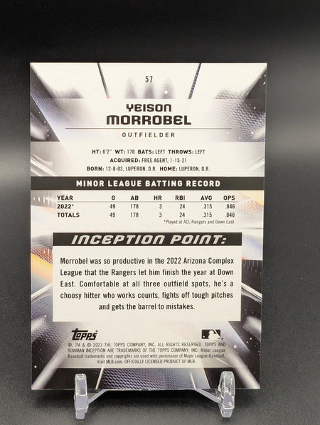 2023 Bowman Inception Yeison Morrobel #57 Blue Foil Pattern II /99