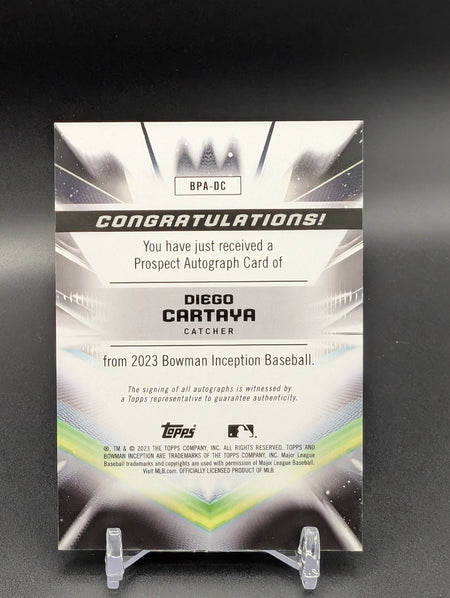 2023 Bowman Inception Diego Cartaya Auto Pink Foil /75
