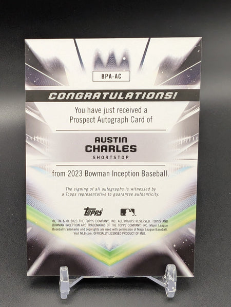 2023 Bowman Inception Austin Charles #92 AUTO GOLD /50