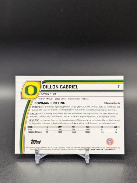 2024 Bowman University Chrome Purple Refractor Dillon Gabriel /399 Purple
