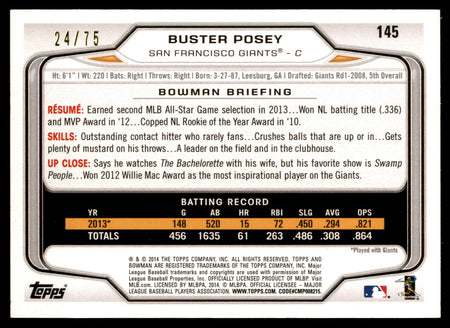 2014 Bowman Buster Posey #145 Silver /75