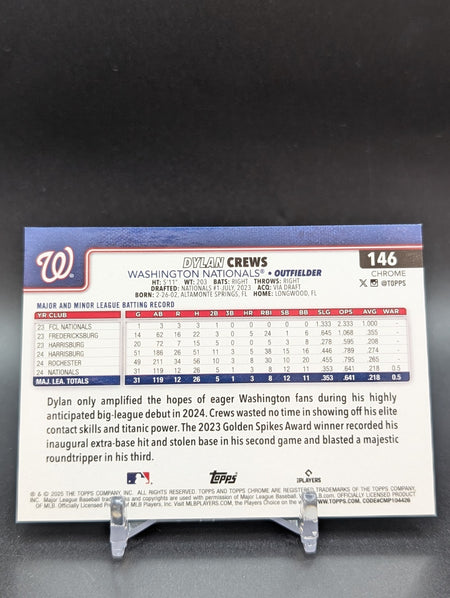 2025 Topps Chrome DYLAN CREWS True Gold Refractor Rookie /50 #146 WAS Nationals