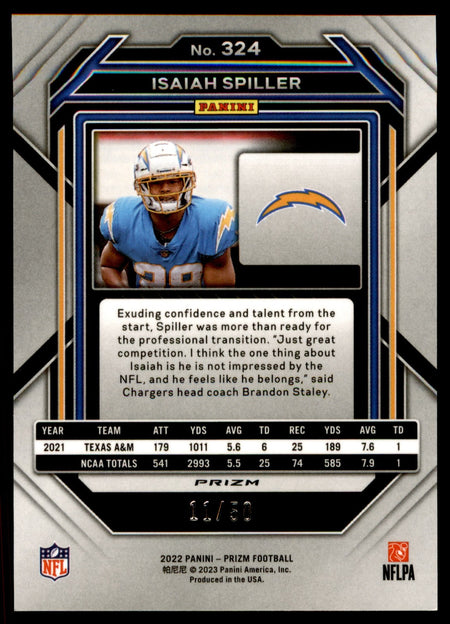 2022 Panini Prizm Isaiah Spiller #324 Red No Huddle Prizms /50