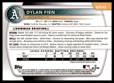 2025 Bowman Dylan Fien #BCP-47 Bowman Chrome Prospects Reptilian Refractor