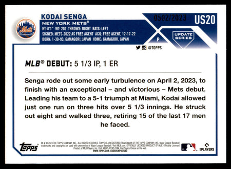 2023 Topps Update Kodai Senga #US20 Gold /2023
