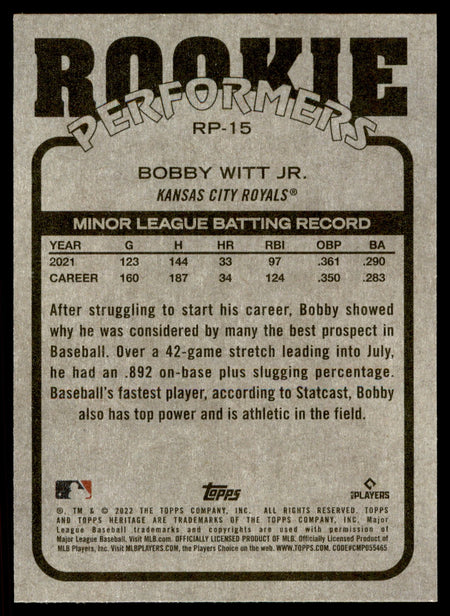 2022 Topps Heritage Bobby Witt Jr. #RP-15 Rookie Performers