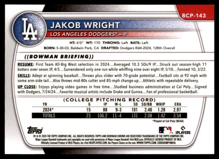 2025 Bowman Jakob Wright #BCP-143 Bowman Chrome Prospects Green Grass Refractor