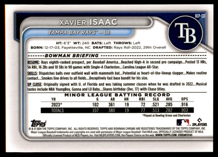 2024 Bowman Xavier Isaac #BCP-133 Bowman Chrome Prospects Blue Shimmer Refractor