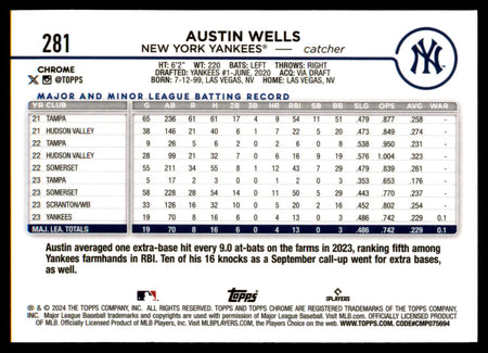 2024 Topps Chrome Austin Wells #281 Green Refractors /99