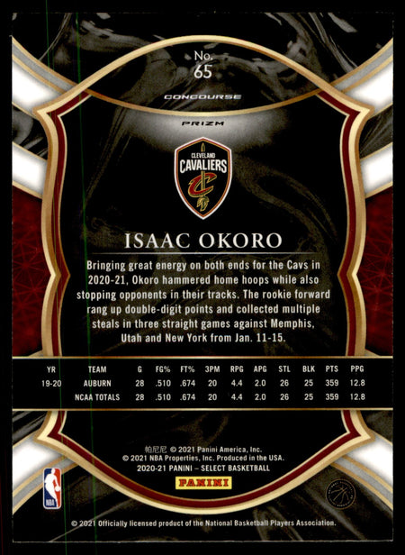 2020 Panini Select Isaac Okoro #65 Red White Orange Flash