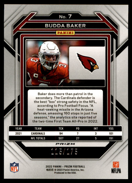 2022 Panini Prizm Budda Baker #7 Hyper Prizms /175