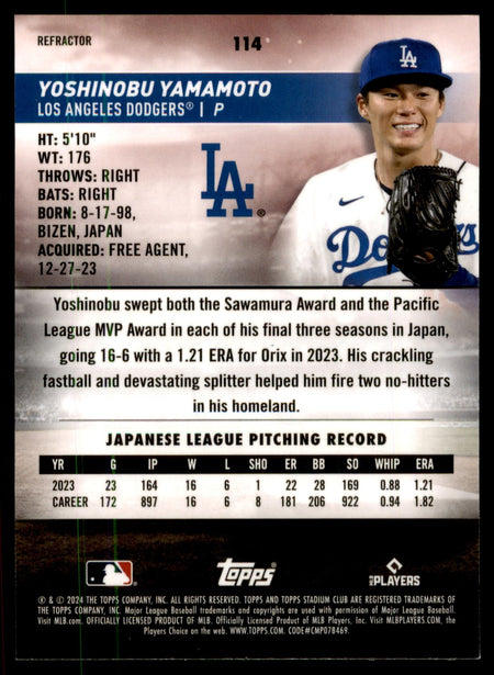 2024 Topps Stadium Club Yoshinobu Yamamoto #114 Chrome Refractor