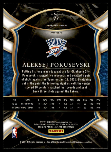 2020 Panini Select Aleksej Pokusevski #77 Red Wave Prizms