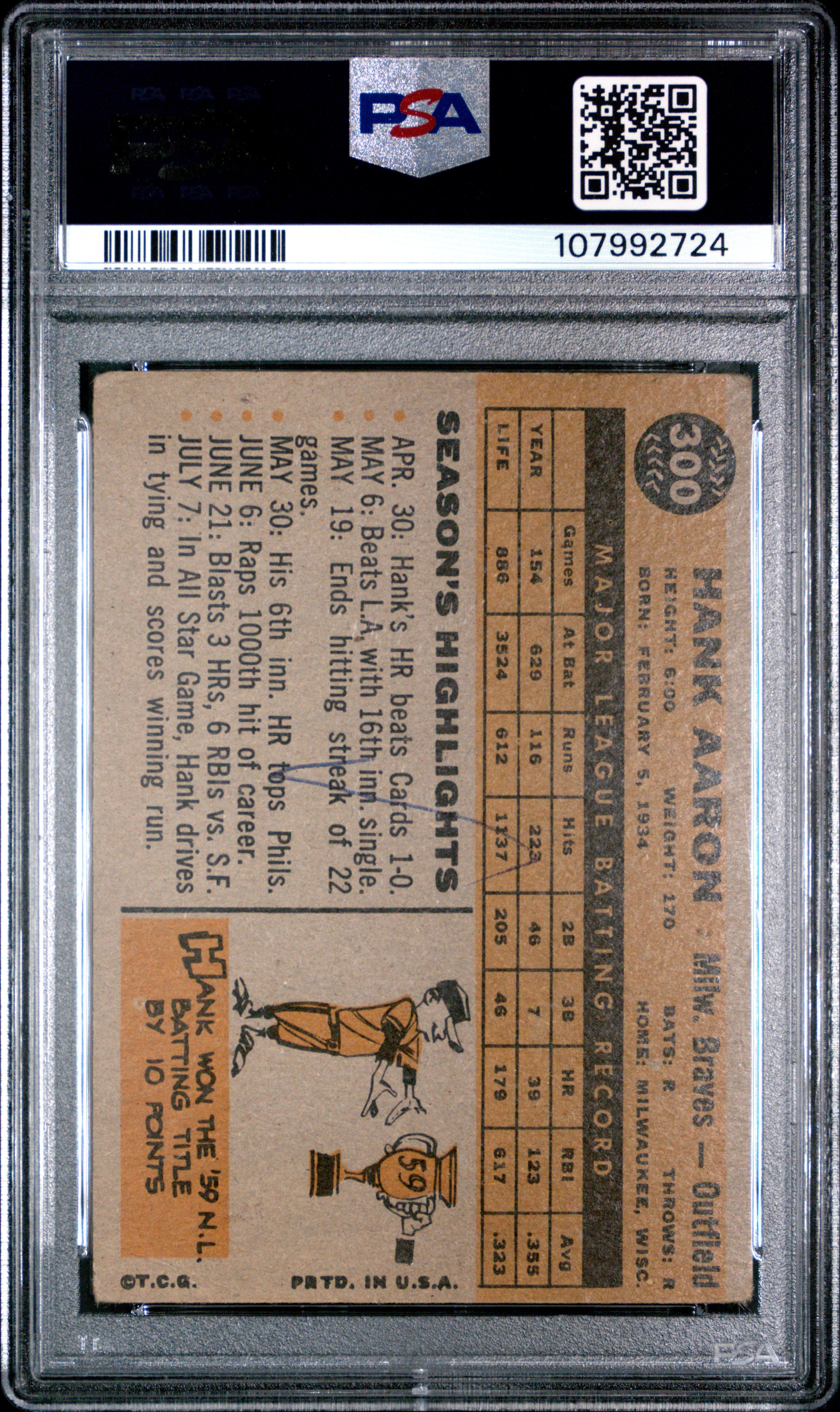 1960 Topps Hank Aaron #300 MK PSA 2