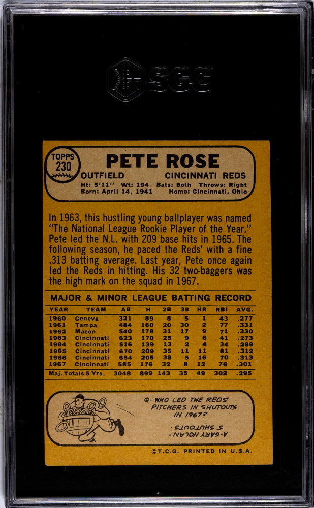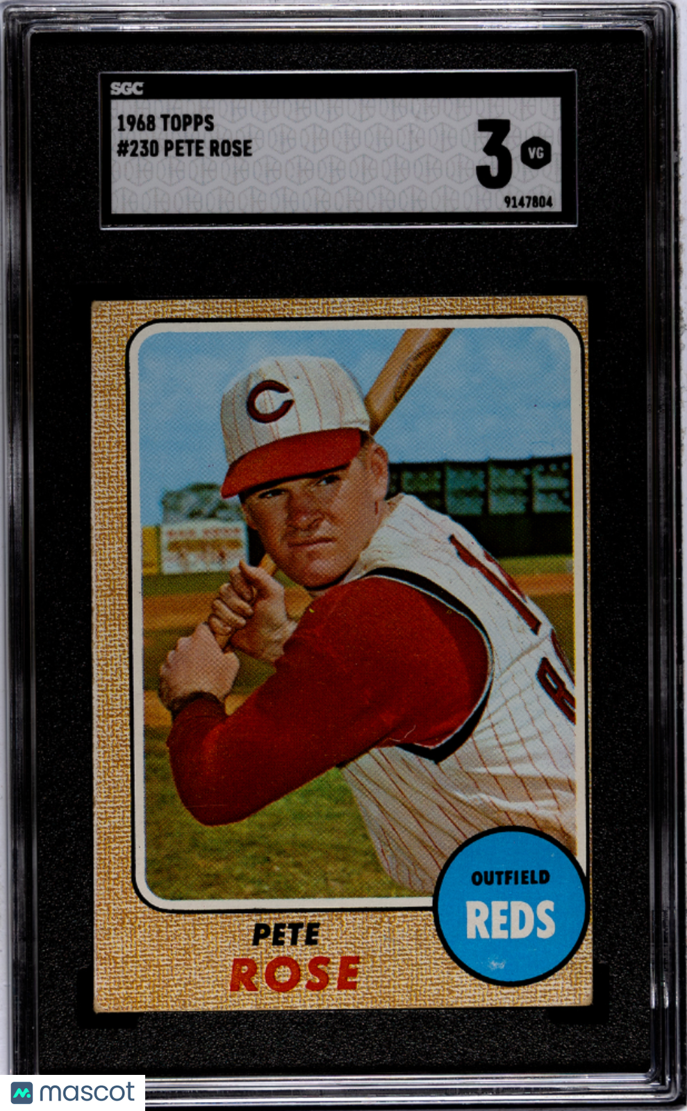 You are purchasing a 1968 Topps Pete Rose #230 SGC 3. You will receive the exact item in the photographs. Thank you for looking. Listed With Mascot.