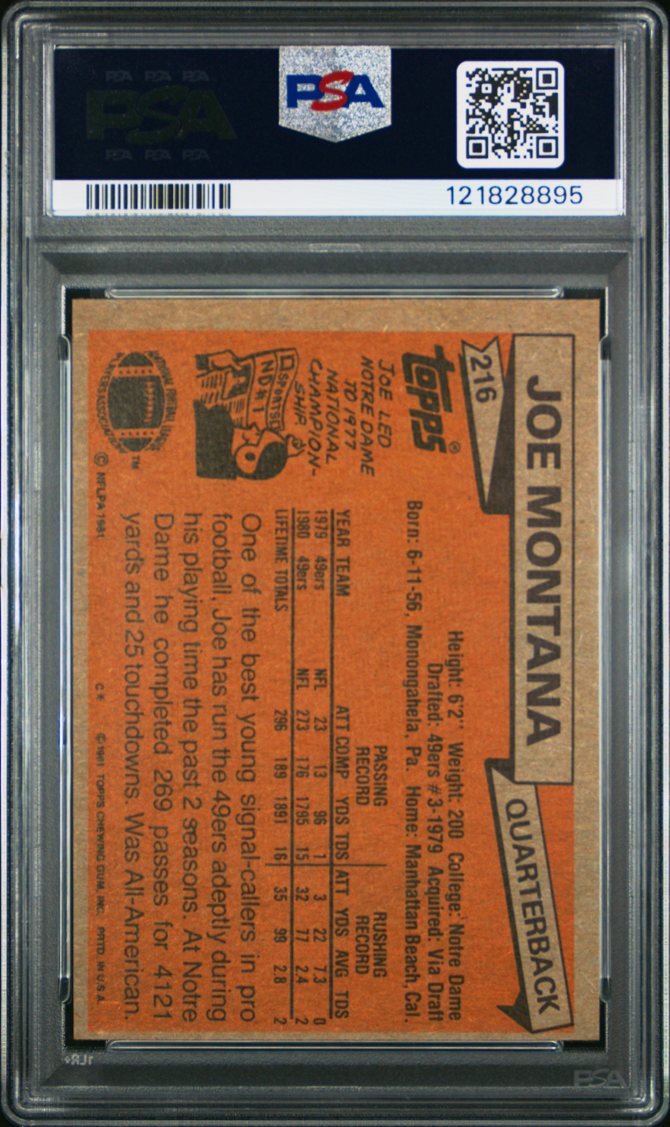 You are purchasing a 1981 Topps Joe Montana #216 PSA 8. You will receive the exact item in the photographs. Thank you for looking. Listed With Mascot.