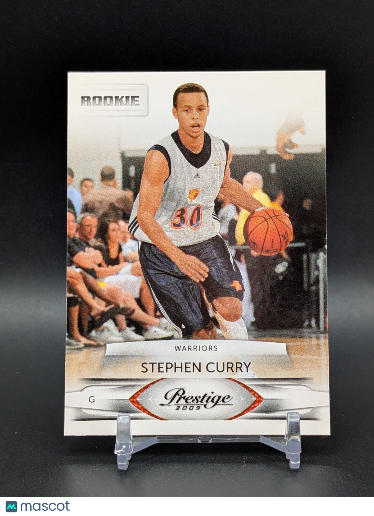 The 2009-10 Panini Prestige Rookie Stephen Curry #207 trading card is a collectible item featuring the now legendary basketball player from the Golden State Warriors. This original card, manufactured by Panini, showcases Curry during his rookie season in the NBA. Made of card stock with a thickness of 20 Pt., this standard-sized card is a must-have for any basketball card collector. With Stephen Curry's autograph hard-signed on the card, this iconic piece commemorates one of the greatest athletes in the league's history. Listed With Mascot.