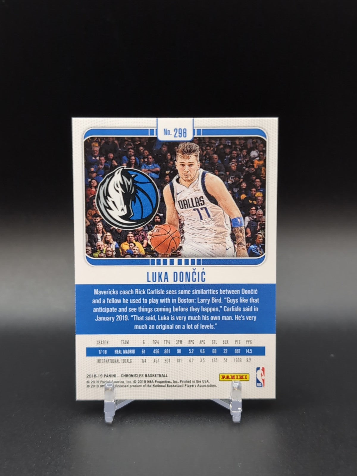 Dive into the world of sports memorabilia with the 2018-19 Panini Chronicles Studio Bronze Luka Doncic #296 Rookie RC card. This sought-after collectible features the talented basketball player Luka Doncic during his rookie season, making it a precious addition for enthusiasts and fans of the Dallas Mavericks. Crafted by Panini America, Inc., the card is part of the renowned 2018-19 Panini Chronicles - [Base] - Bronze set, highlighting the player's early career. With its original design and the promise of authenticity, this card holds the potential to become a centerpiece in any collection, capturing a piece of sports history. Listed With Mascot.