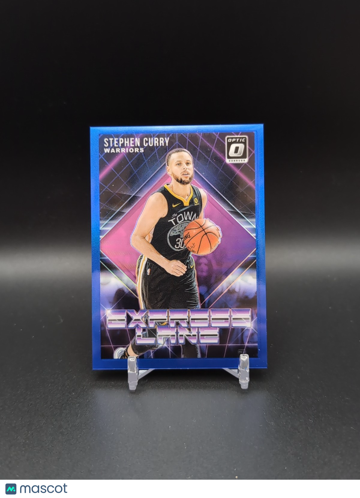 Elevate your collection with the 2018-19 Panini Donruss Optic Stephen Curry Blue Express Lane card, numbered out of 85. This eye-catching Blue Prizm variant features the sharp-shooting Golden State Warriors point guard and is a must-have for fans of the game and collectors alike. The card is part of the esteemed 2018-19 Panini Donruss Optic set, renowned for its premium quality and design. In this exclusive piece, the express lane motif of the Blue Prizm parallel sets the stage for a visually stunning card, capturing the essence of Stephen Curry's dynamic play. Whether you're a seasoned collector or a dedicated fan of the NBA, this card is a standout addition that celebrates the legacy of one of basketball's modern legends. Listed With Mascot.