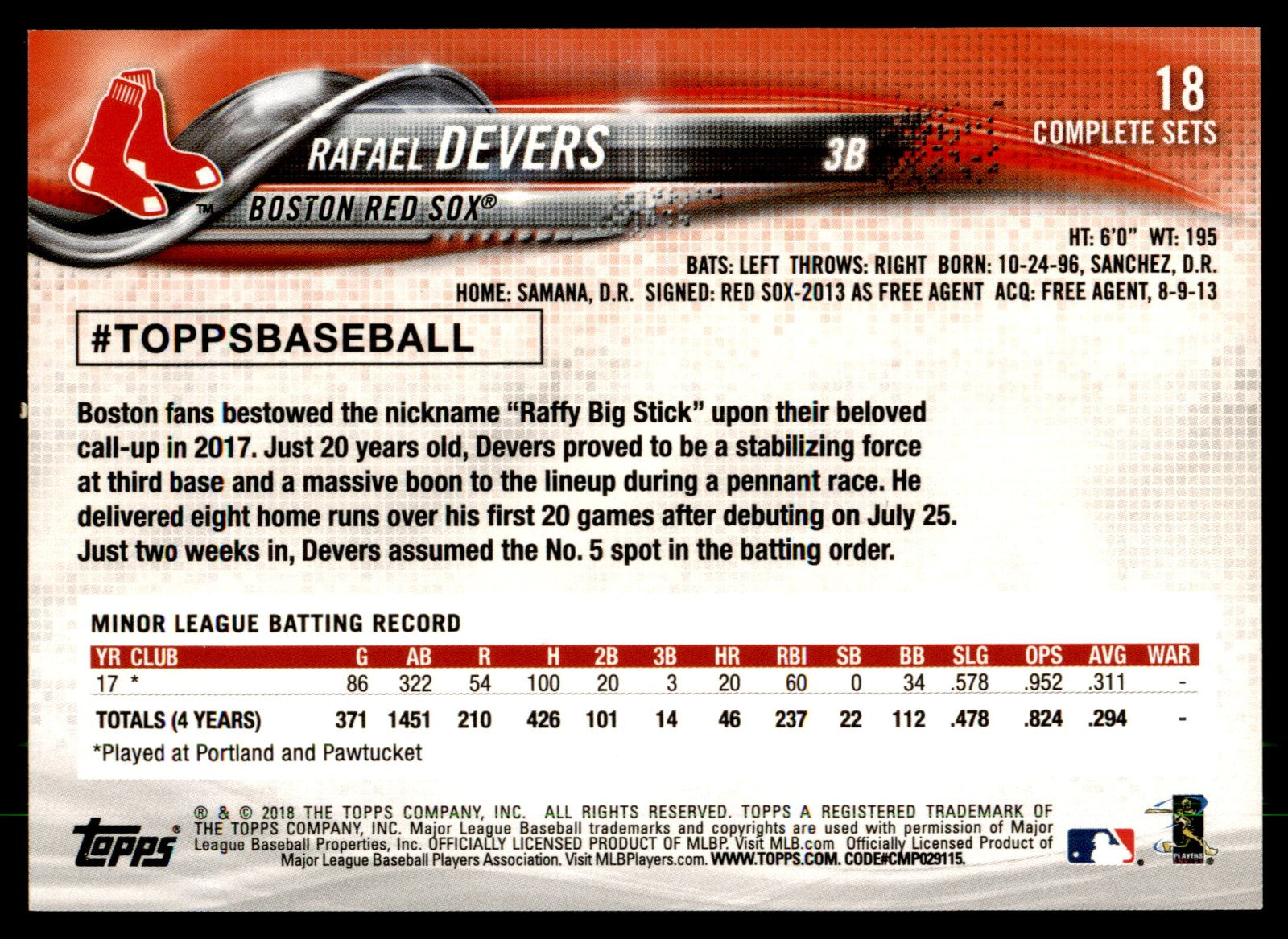 2018 Topps Rafael Devers #18 Rookie Image Variation Bonus