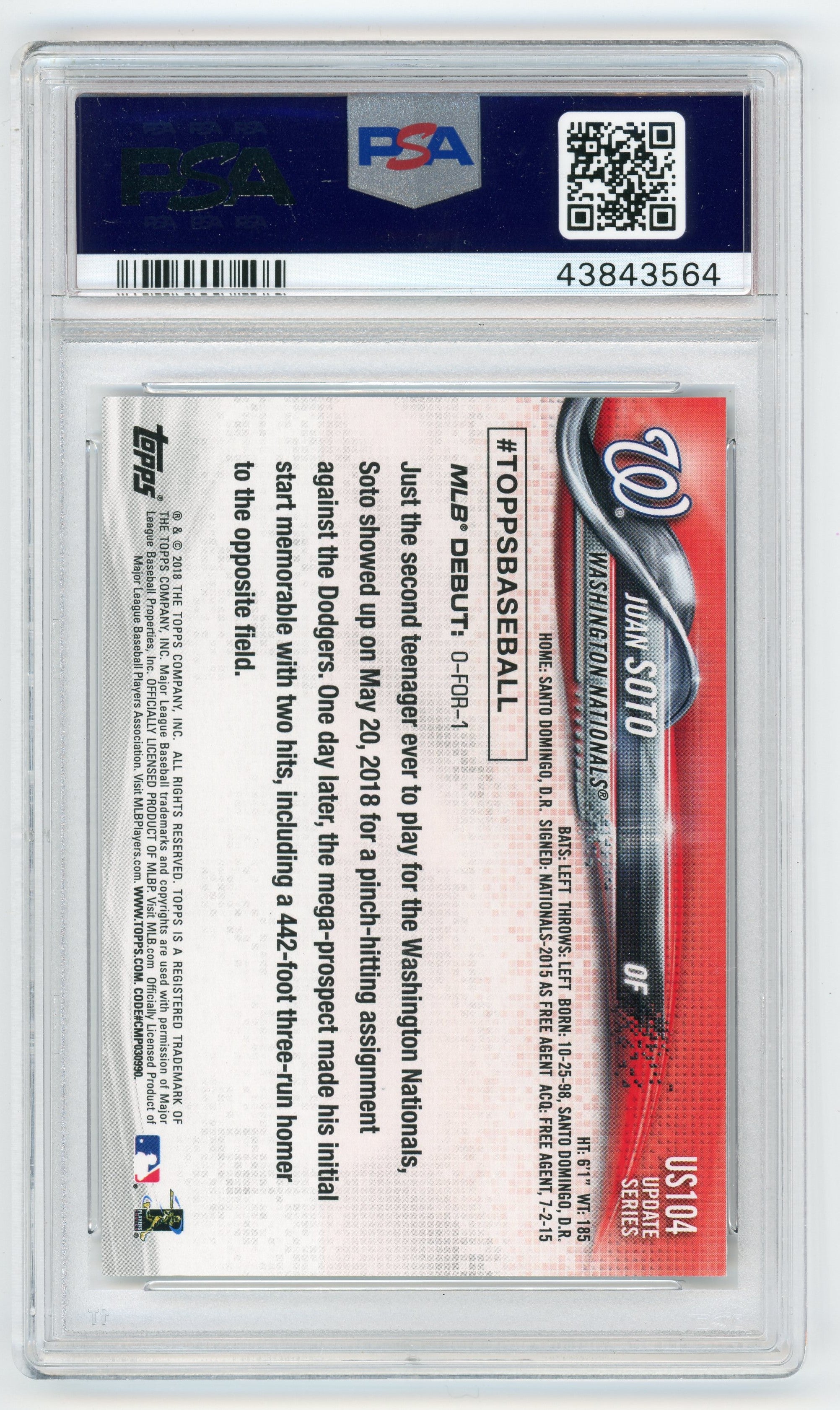 You are purchasing a 2018 Topps Update Juan Soto #US104 PSA 9. You will receive the exact card in the photographs. Thank you for looking. Listed With Mascot.