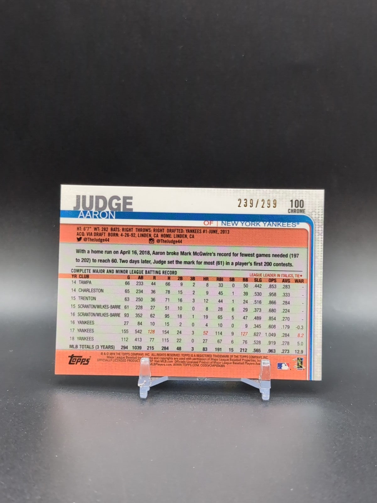 2019 Topps Chrome Aaron Judge /299 #100 Purple Refractor /299 New York Yankees