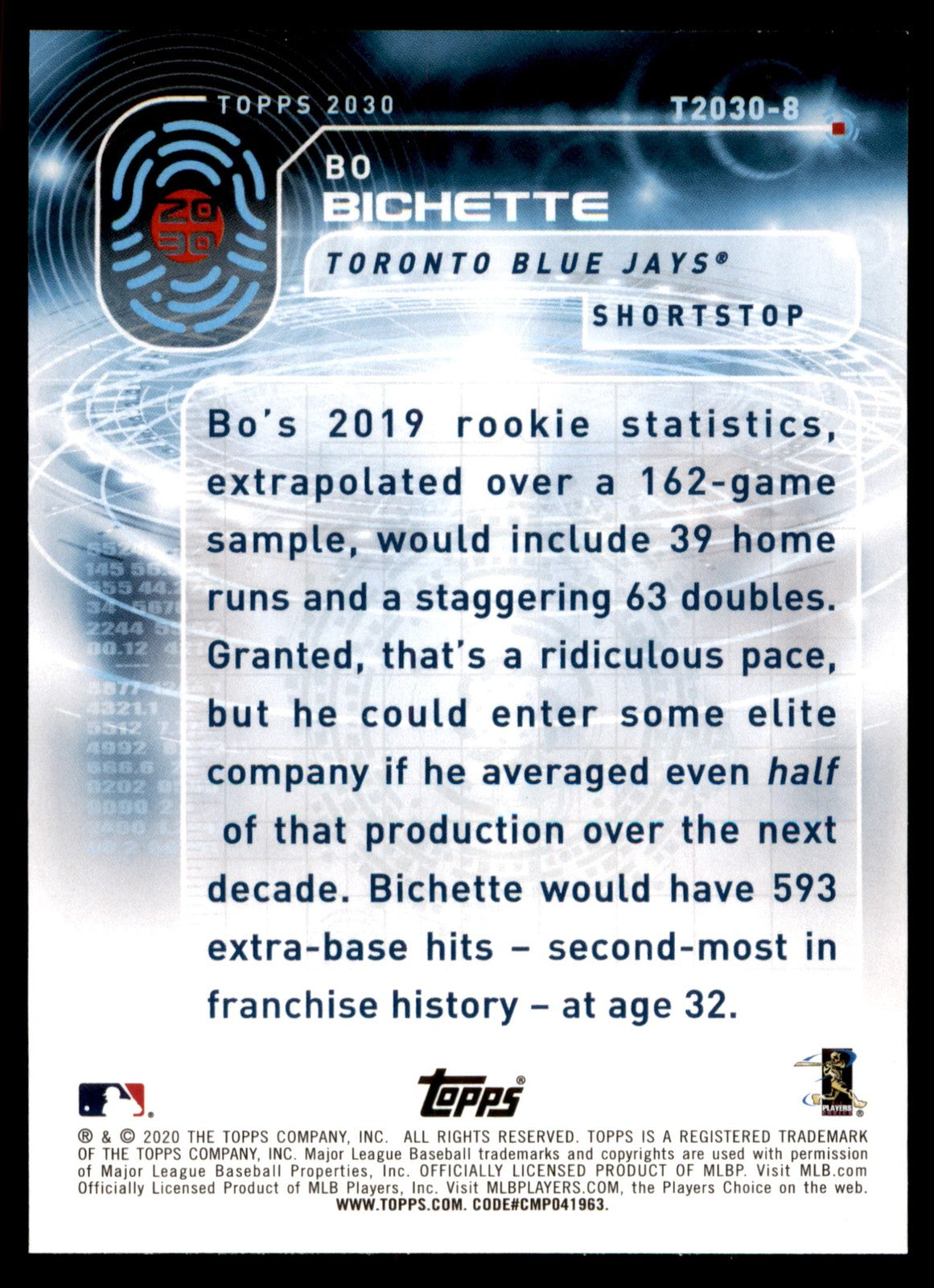 2020 Topps Bo Bichette #T2030-8 Topps 2030