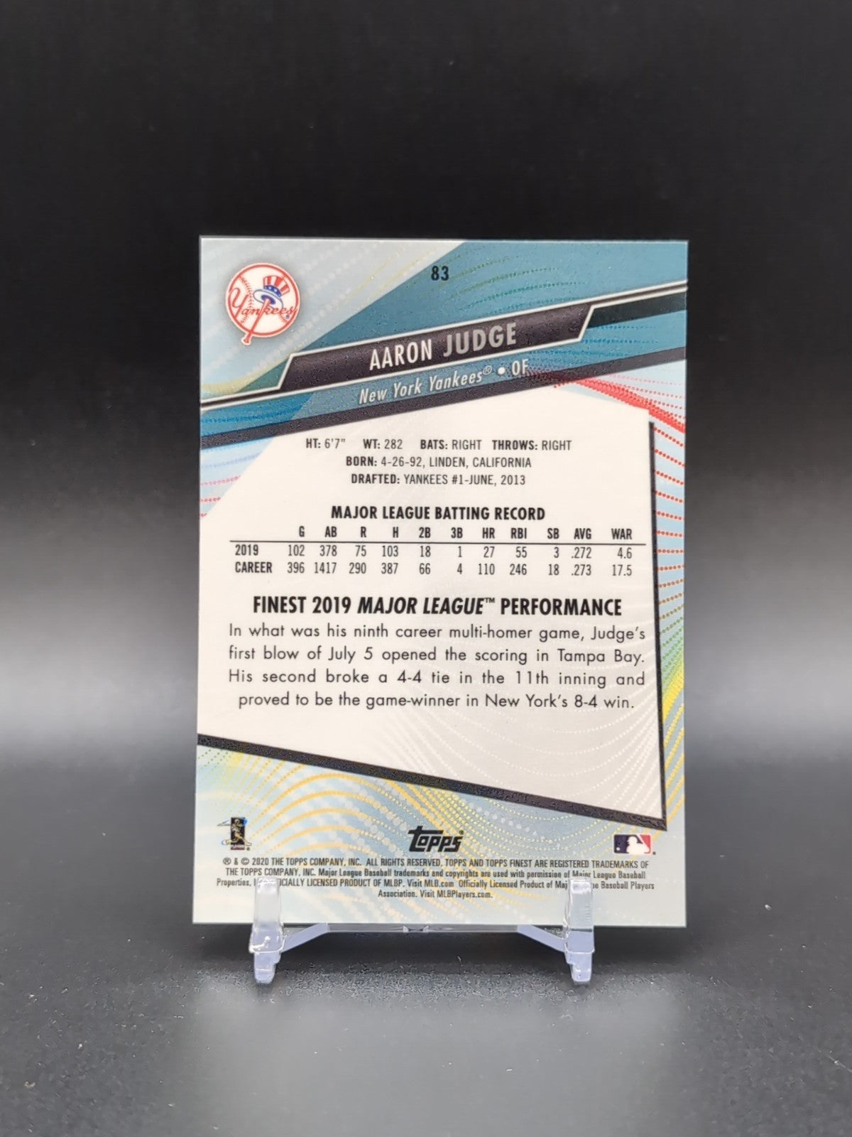 2020 Topps Finest Aaron Judge Blue Refractor /150 #83 New York Yankees