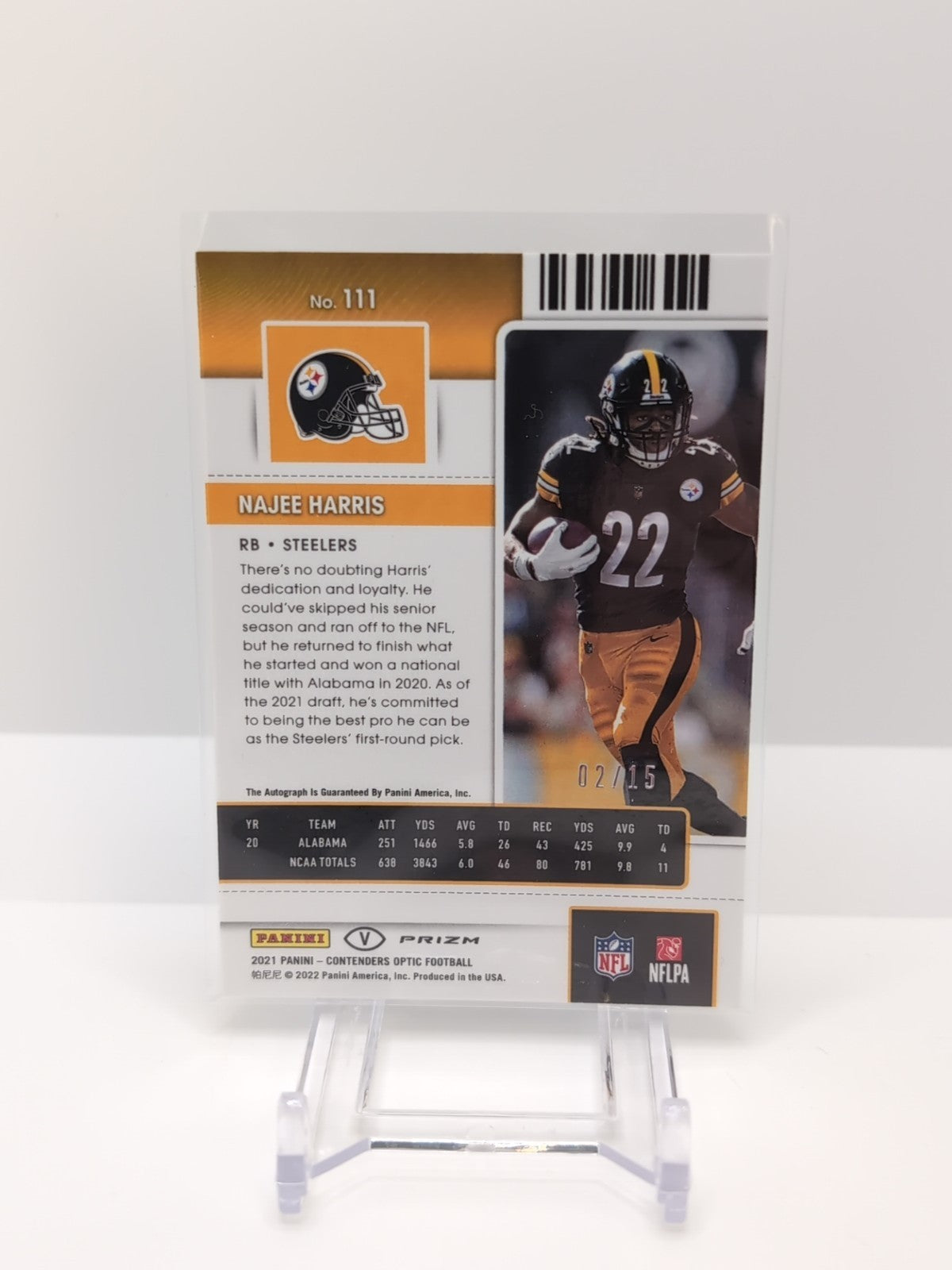 2021 Contenders Optic Najee Harris #111 Rookie Ticket Auto Green #'d /15