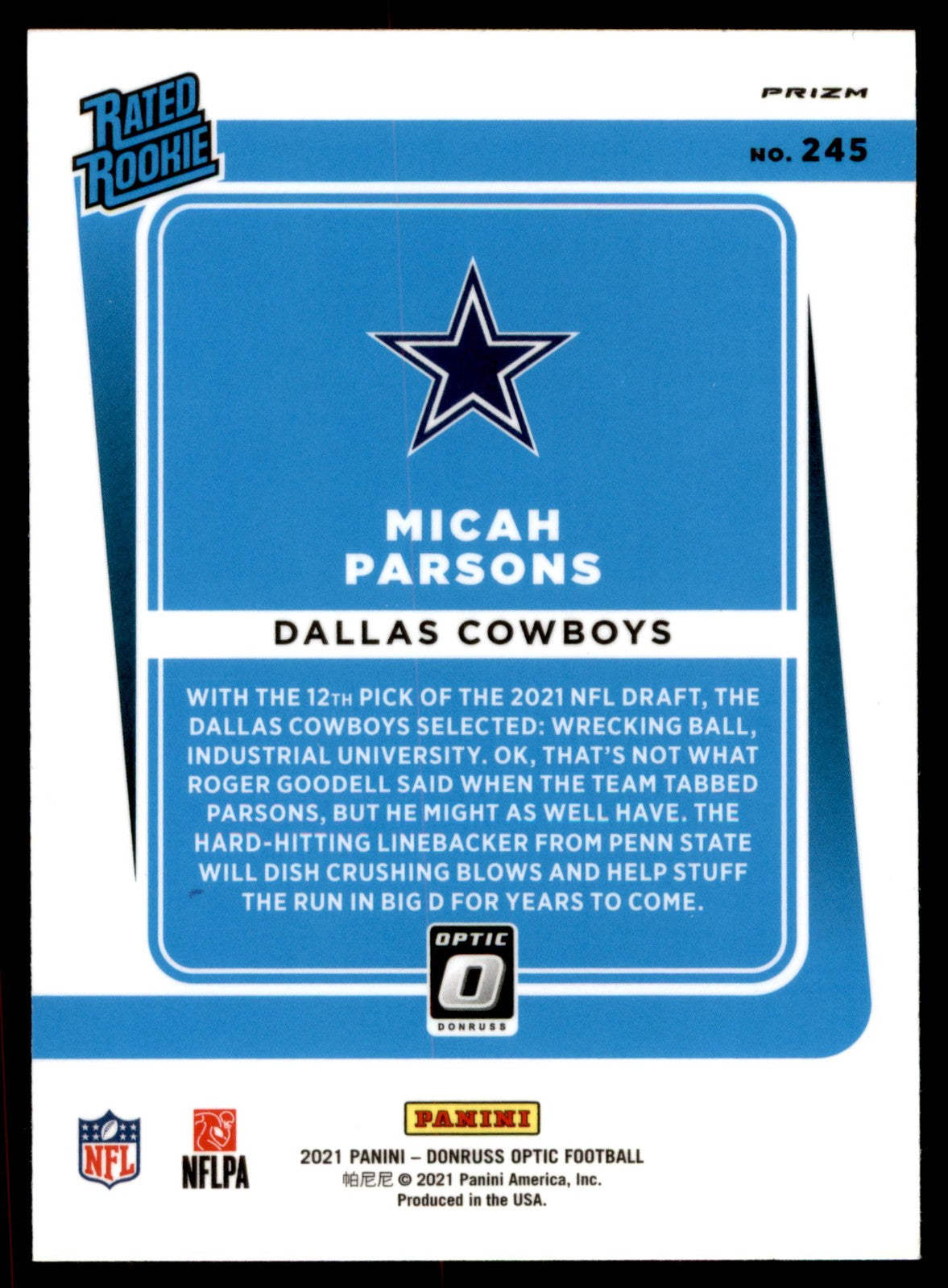2021 Donruss Optic Micah Parsons #245 Blue Hyper