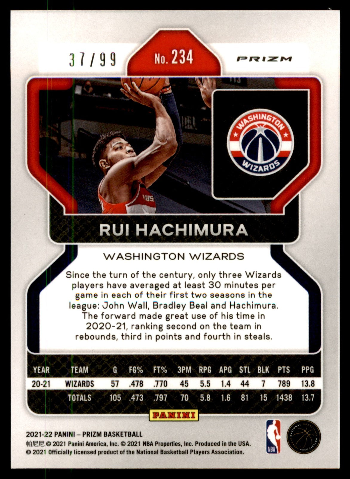 2021 Panini Prizm Rui Hachimura #234 Purple /99