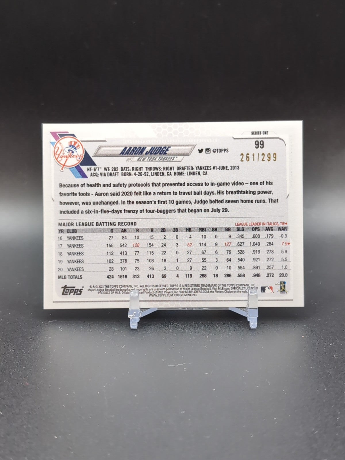 2021 Topps Series 1 Aaron Judge Orange Foil /299 #99 New York Yankees MVP