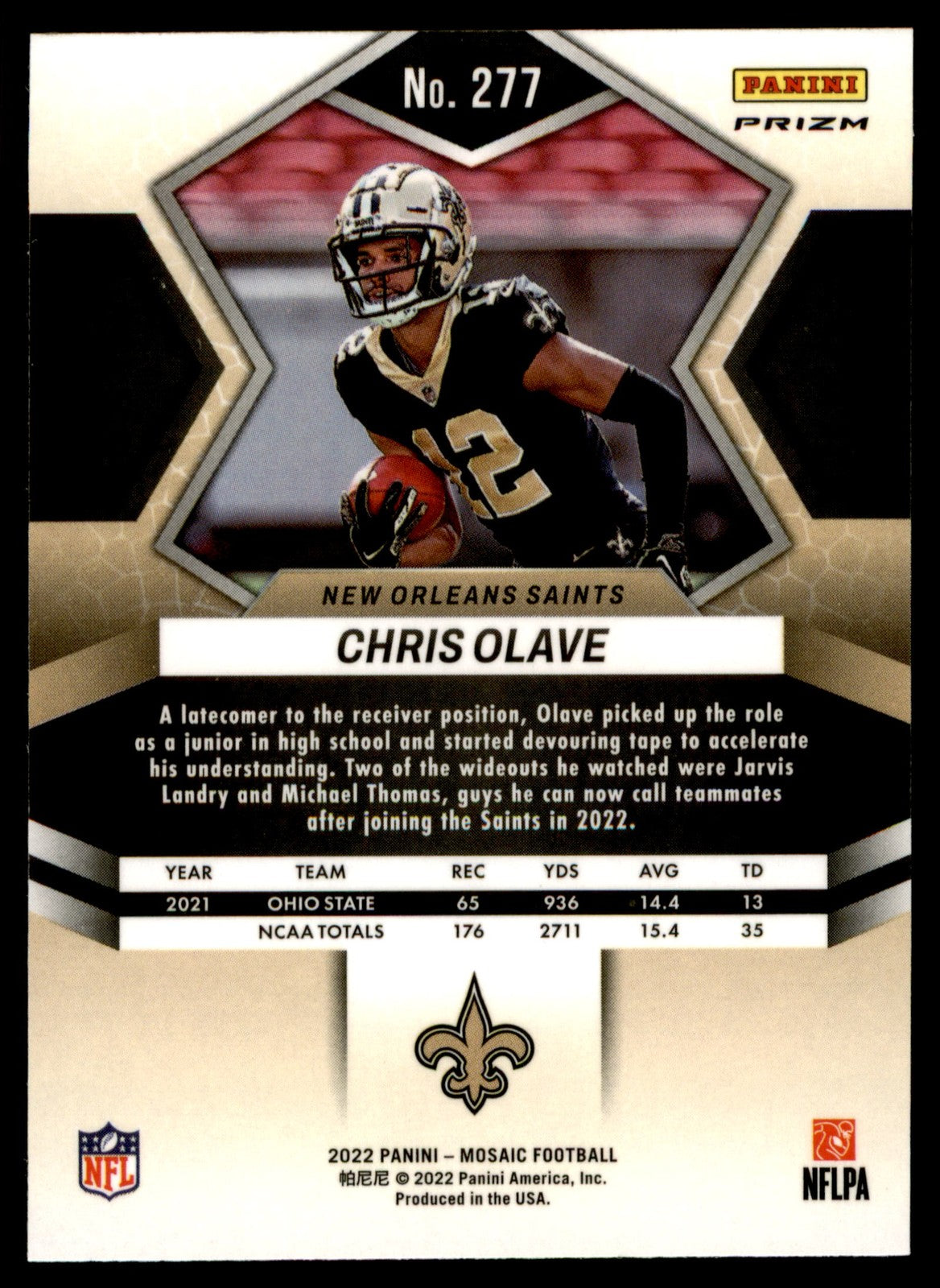 2022 Panini Mosaic Chris Olave #277 Sparkle Red