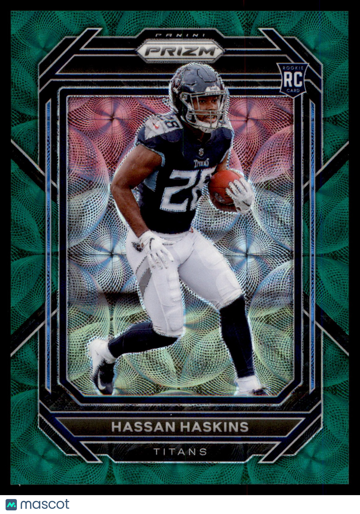 Item Description 2022 Panini Prizm Hassan Haskins #326 Green Scope Prizms /75 Tennessee Titans Any visible lines on the images are due to the hi-res scanner and are not on the actual card. Refer to hi-res images to evaluate card condition Shipping Please refer to the listing specifics for shipping price. Return Policy No Returns for Trading Cards Consignment Options Looking to sell your cards, but don't have time? Reach out to use here on eBay and we will be happy to assist you! Listed With Mascot.