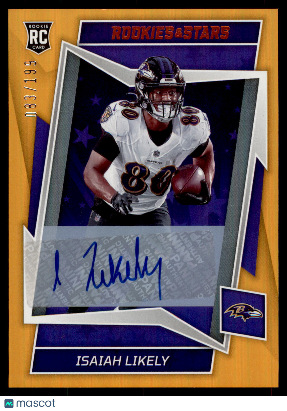 2022 Panini Rookies & Stars Isaiah Likely #168 Rookies Signatures Orange