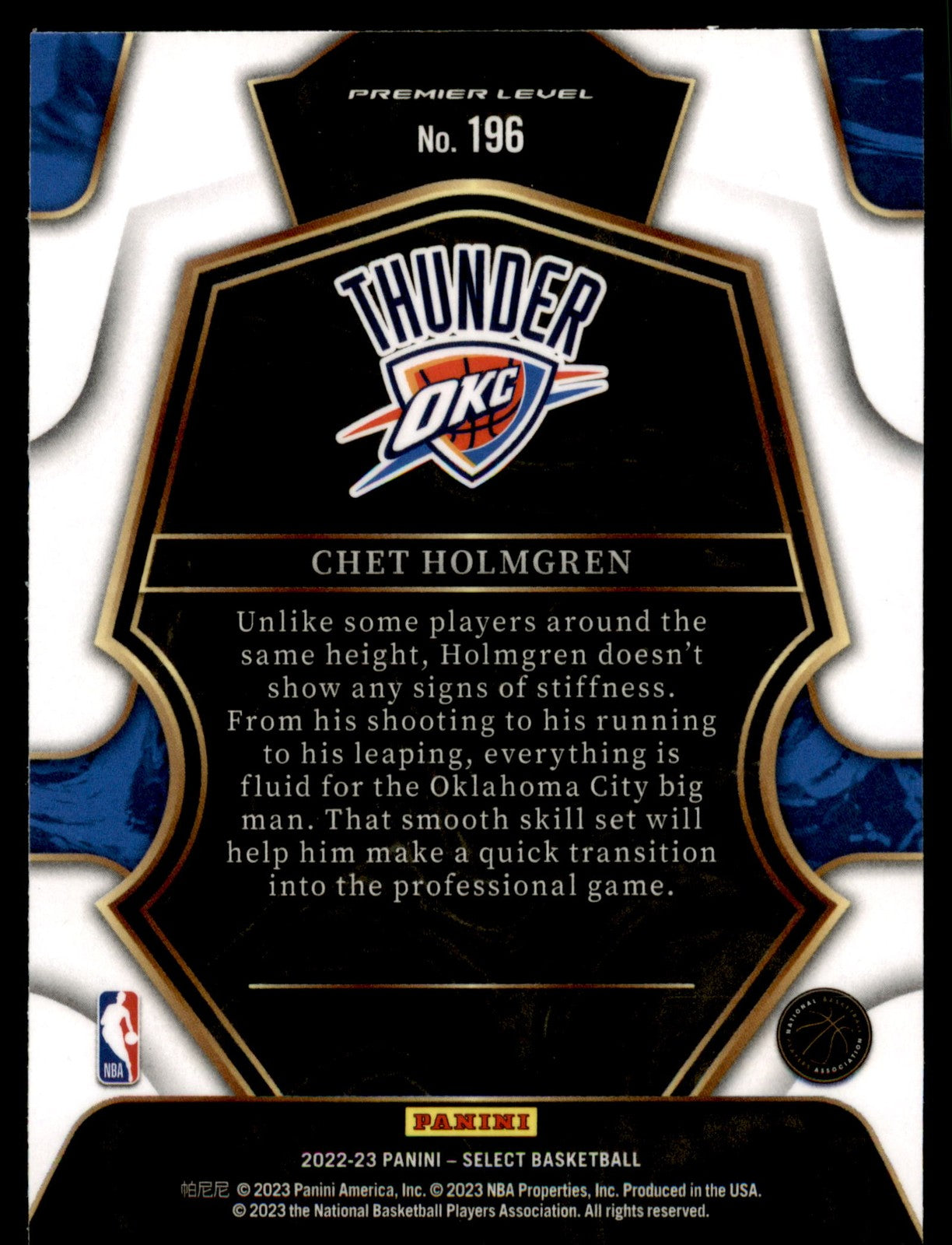 2022 Panini Select Chet Holmgren #196