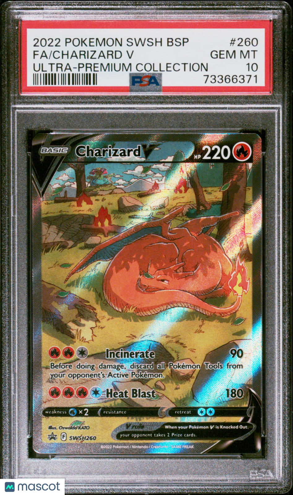 You are purchasing a 2022 Pokemon Swsh Black Star Promo Charizard V Fa #260 Ultra-Premium Collection PSA 10. You will receive the exact item in the photographs. Thank you for looking. Listed With Mascot.